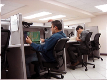 A cada alumno se le asigna un espacio permanente de trabajo durante su estancia en El Colef con el fin de que puedan realizar cualquier actividad académica extra clase en total privacidad y sin restricción de horario.